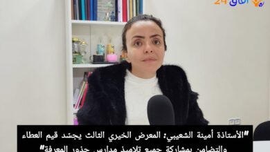 الجمعة 13 فبراير 2026 الأستاذة أمينة الشعيبي: المعرض الخيري الثالث يجسد قيم العطاء والتضامن بمشاركة جميع تلاميذ مدارس جذور المعرفة…