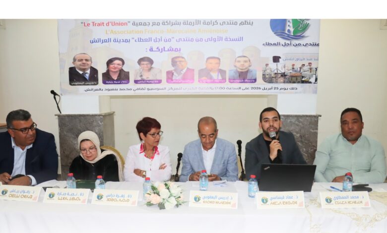 في مشهد يعكس حيوية المجتمع المدني بمدينة العرائش، احتضن المركز السوسيوثقافي “محمد بن عبود”، مساء السبت 25 أبريل 2026، فعاليات النسخة الأولى من منتدى “من أجل العطاء”، في مبادرة إنسانية وأكاديمية متميزة نظمها “منتدى كرامة الأرملة” بشراكة مع جمعية “Le Trait d’Union” (الرابطة الفرنسية المغربية بأميان)، تحت شعار : “بالتطوع نرتقي .. وعلى درب العطاء نلتقي”. وقد جاء هذا الحدث ليؤكد أن العمل التطوعي لم يعد مجرد مبادرات معزولة، بل أصبح رهانا مجتمعيا يستدعي التفكير الجماعي والتأطير العلمي.