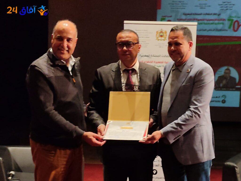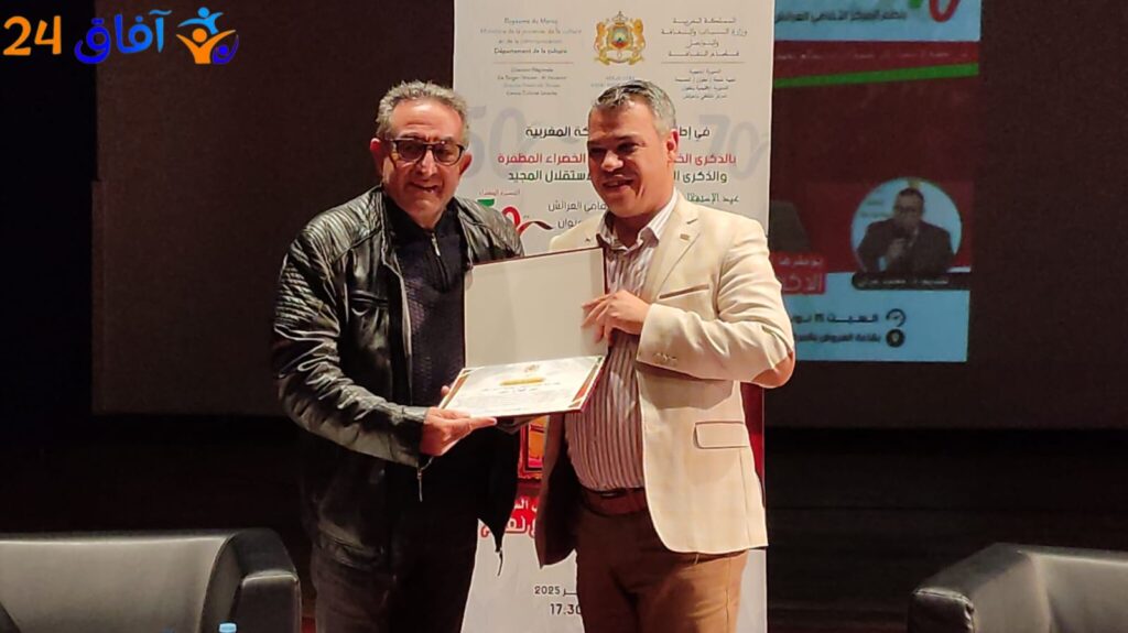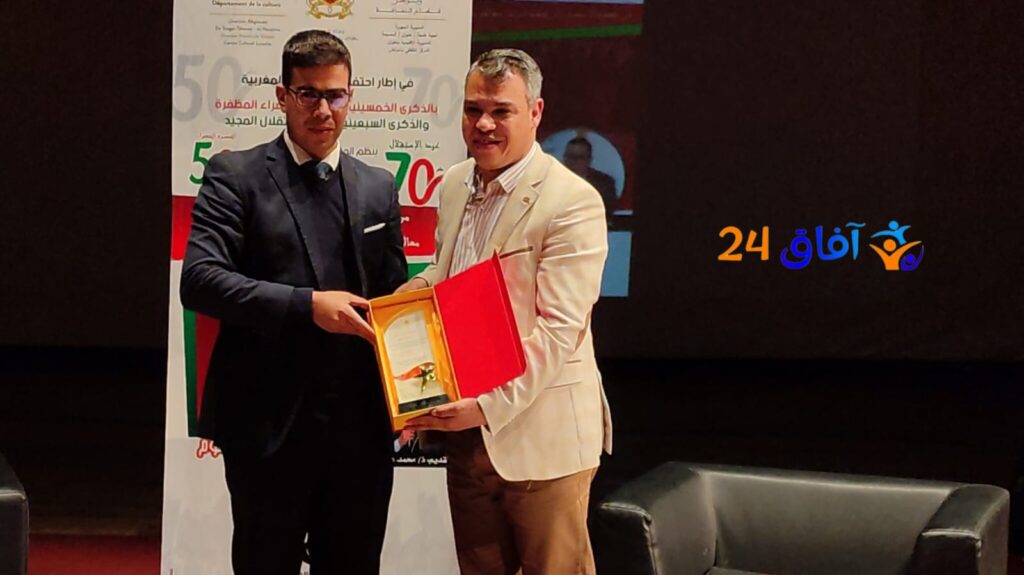 وفي ختام هذا اللقاء، تم تكريم الدكتور عبد الفتاح نعوم بدرع تقديري وشهادة اعتراف، قبل أن يلتف حوله الحضور لالتقاط صور تذكارية، في أجواء امتزج فيها التقدير بالفرح، والإحساس بأن العرائش كانت فعلاً أمام لحظة فكرية استثنائية.