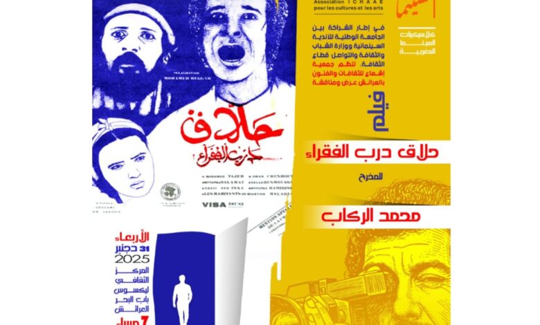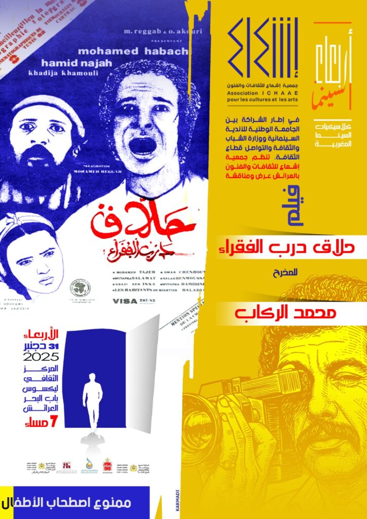 إحياء للذاكرة السينمائية المغربية، واحتفاء بروادها الذين أسهموا في بنائها الفني والثقافي، وفي إطار الشراكة المبرمة بين الجامعة الوطنية للأندية السينمائية بالمغرب ووزارة الشباب والثقافة والتواصل /قطاع الثقافة، تعلن جمعية إشعاع للثقافات والفنون بالعرائش تنظيم عرض ومناقشة فيلم ” حلاق درب الفقراء” للمخرج الراحل محمد الرگاب، ضمن فقرة أربعاء السينما”،وذلك يوم الأربعاء 31 دجنبر2025 بالمركز الثقافي ليكسوس باب البحر، بتعاون مع المركز السينمائي المغربي، وبتنسيق مع المركز الثقافي، وبدعم من مجلس إقليم العرائش.