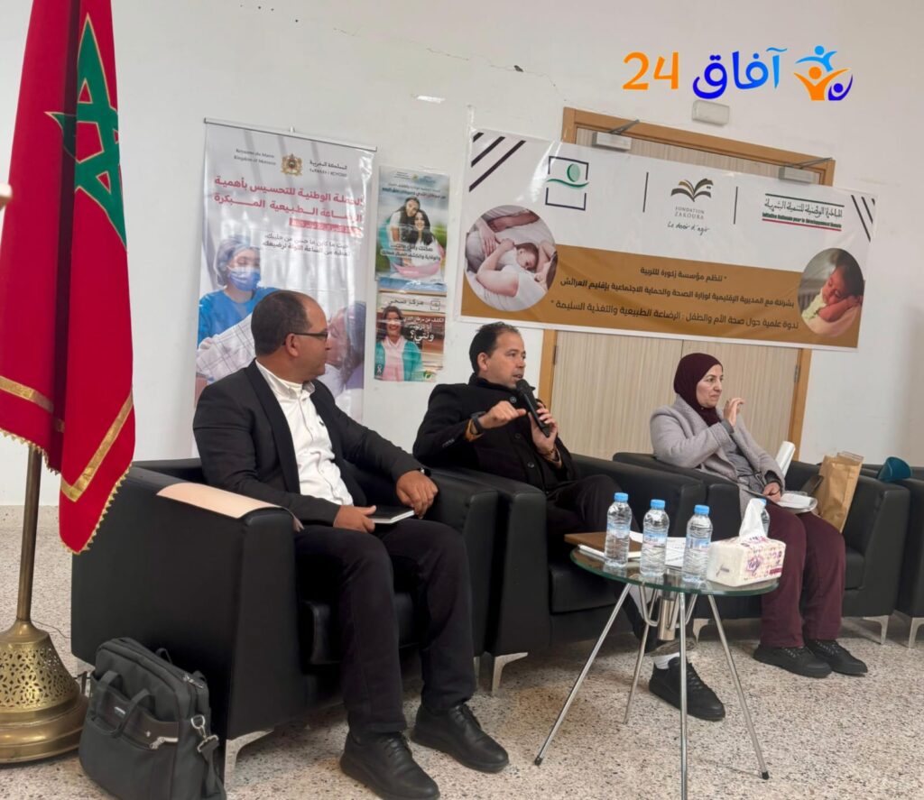 وقد أُدرجت هذه الندوة أمام ثلة من الدكاترة والباحثين المختصين، على رأسهم الدكتور محمد أحليم، الذين قدّموا عروضًا علمية غنية تمحورت حول أهمية التغذية الصحية في مراحل الحمل والطفولة، ودور الرضاعة الطبيعية في النمو السليم للرضيع، إضافة إلى جملة من الإرشادات الصحية للأمهات خلال فترة الحمل والولادة.